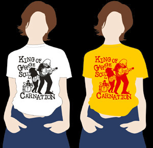 Tシャツ 会場限定! ガレージ・パンク、ロックンロールをメインフィールドに評論、DJ、イラストレーターと、多彩な活動を続けるキング・ジョー画伯による書き下ろしTシャツ。氏は現在『やるせなく果てしなく』なるタイトルの単行本を制作中。デザインはカーネーション・マニアックスにはおなじみの2m09cm Graphics。 |